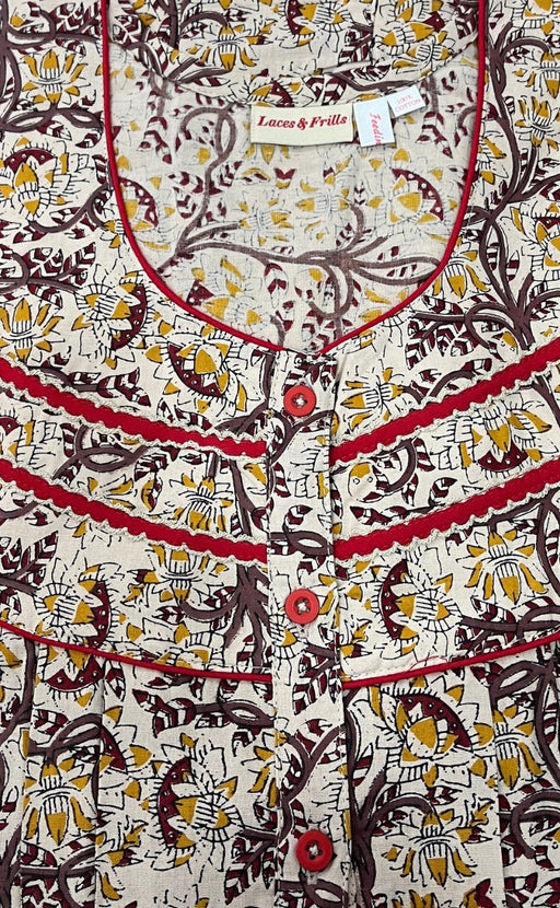 Off White/Maroon Garden Pure Cotton Feeding Nursing Nighty . Pure Durable Cotton | Laces and Frills