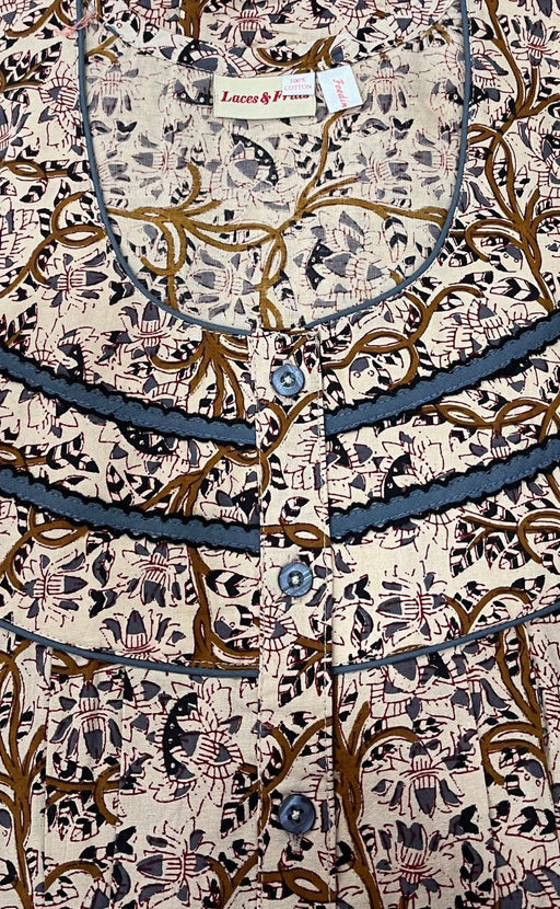 Black/Brown Abstract Spun Feeding Nursing Nighty. Flowy Spun Fabric | Laces and Frills