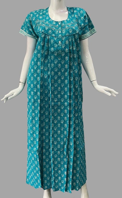Sea Green Tiny Flora Pure Cotton Feeding Nursing Nighty . Pure Durable Cotton | Laces and Frills