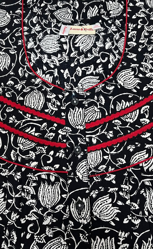 Black Floral Soft Cotton Feeding Nursing Nighty. Soft Breathable Fabric | Laces and Frills