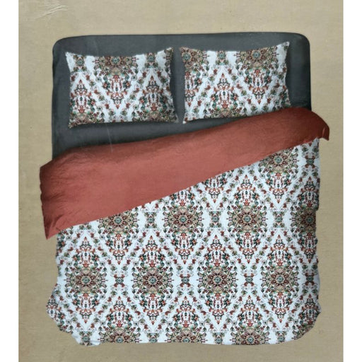 View full detailsWhite/Peach Ajrakh Print Double Bedsheet with Pillow Covers/108" x 108"
