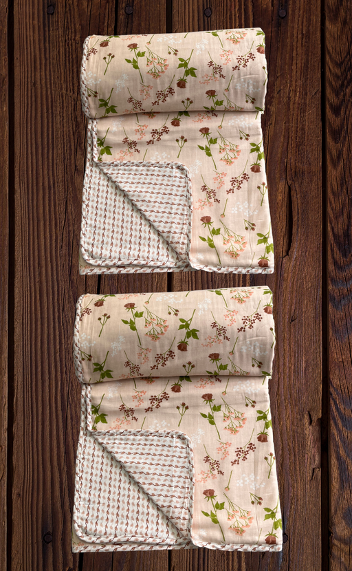 View full detailsBlanket | Dohar. Peach/Orange Flora, Soft & Cozy. One Double bed Reversible | Laces and Frills