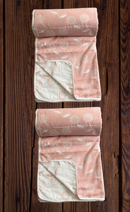 View full detailsBlanket | Dohar. Peach/White Flora, Soft & Cozy. One Double bed Reversible | Laces and Frills