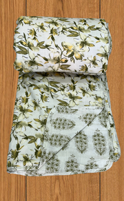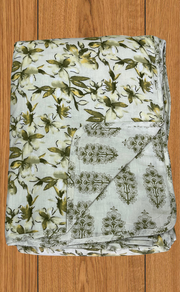 Blanket | Dohar. Green Garden, Soft & Cozy. One Double bed Reversible | Laces and Frills