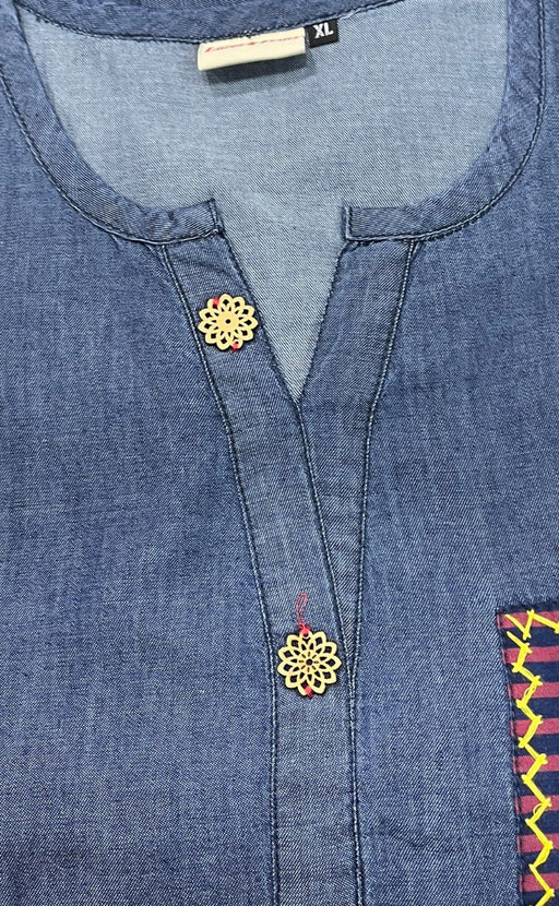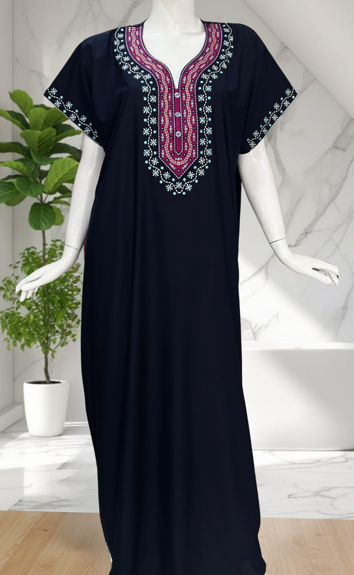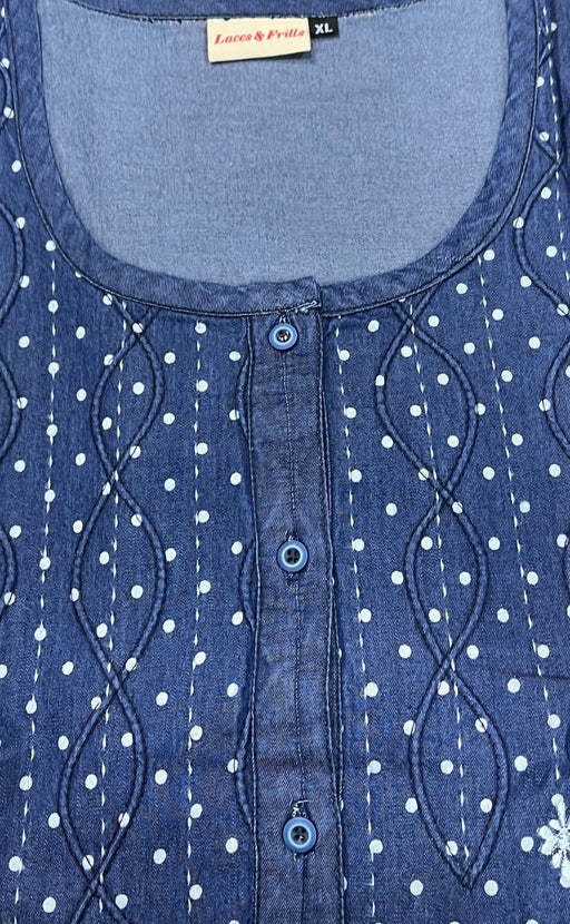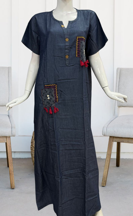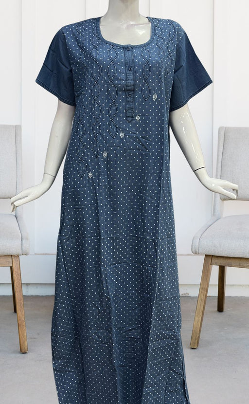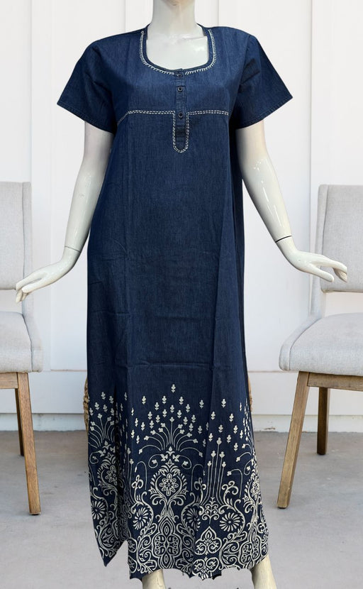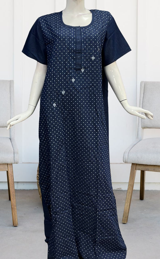 View full detailsNavy Blue Embroidery Soft Cotton Nighty. Soft Breathable Fabric | Laces and Frills