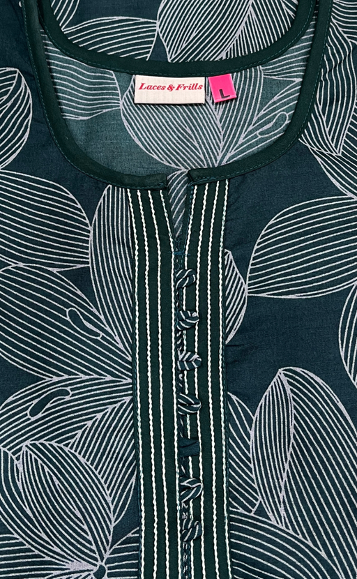 Bottle Green Floral Soft Cotton Nighty. Soft Breathable Fabric | Laces and Frills