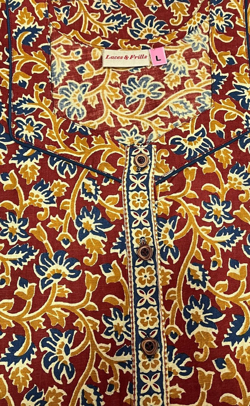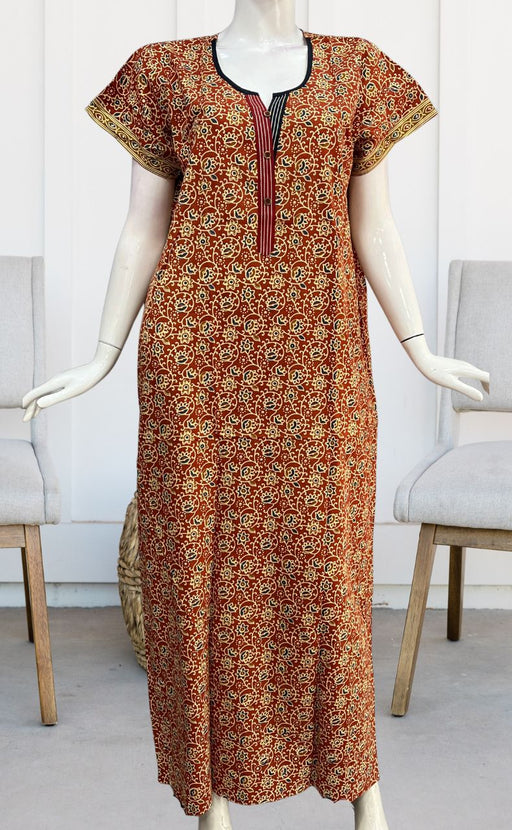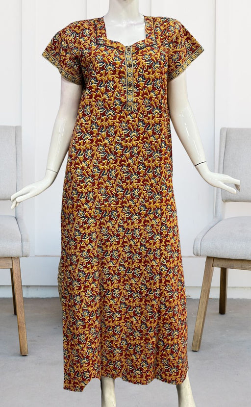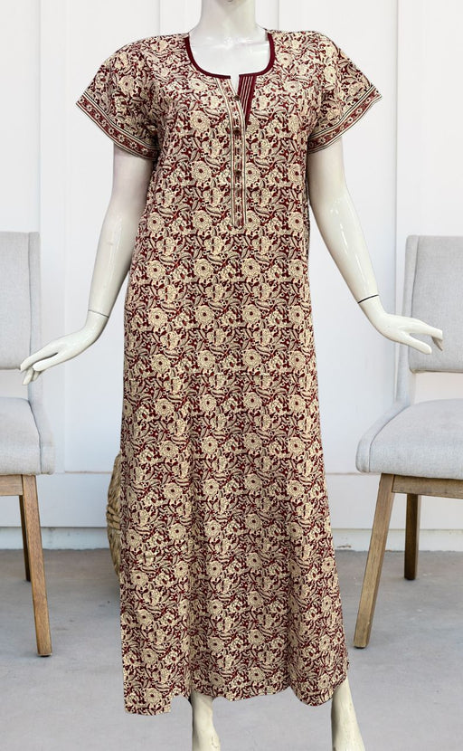 View full detailsRust Maroon Floral Pure Cotton Nighty. Pure Durable Cotton | Laces and Frills