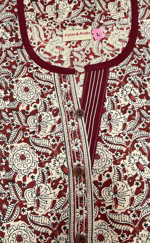 View full detailsRust Maroon Flora Pure Cotton Nighty. Pure Durable Cotton | Laces and Frills