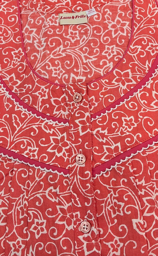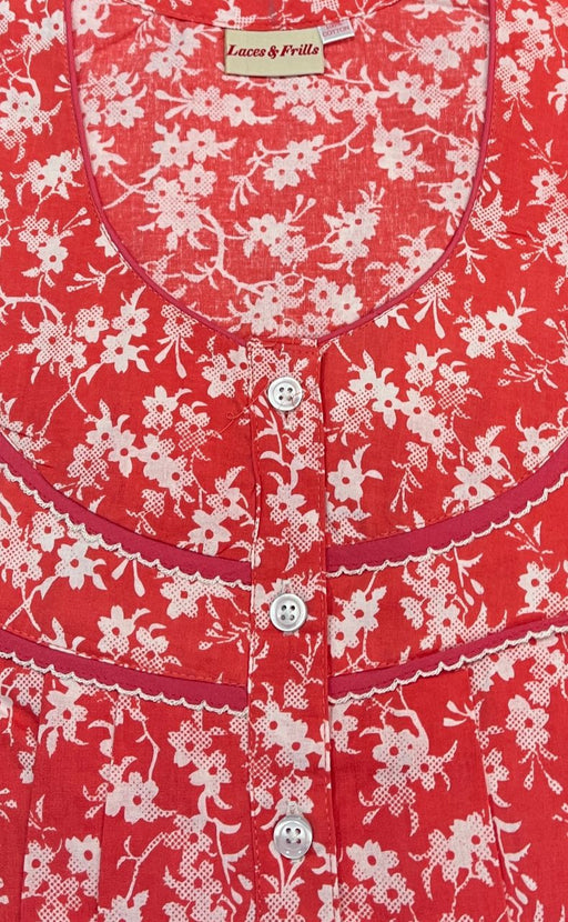 View full detailsPeach/Red Tiny Floral Full Open Pure Cotton Nighty. Pure Cotton | Laces and Frills