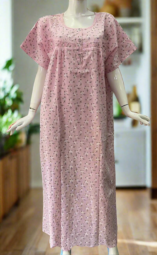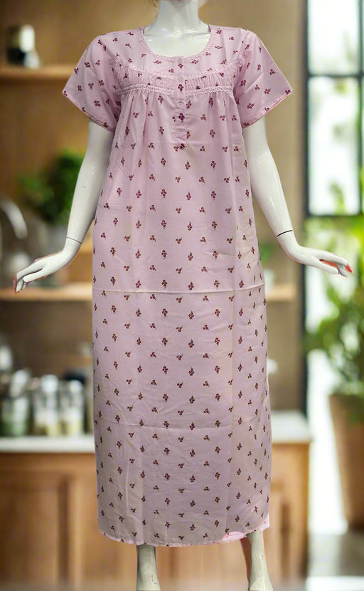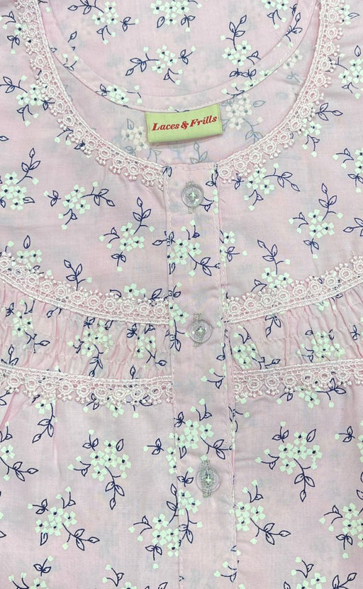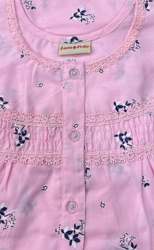 Pink Floral Boutique Cotton Nighty. Cotton Fabric | Laces and Frills