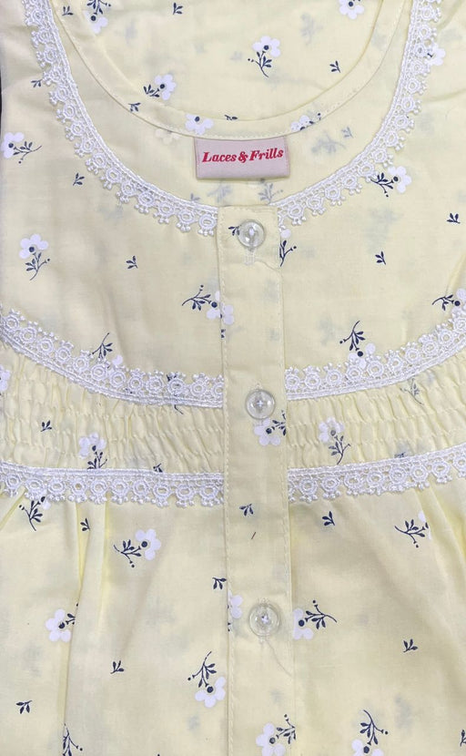 View full detailsYellow Tiny Flora Boutique Cotton Nighty. Pure Durable Cotton | Laces and Frills