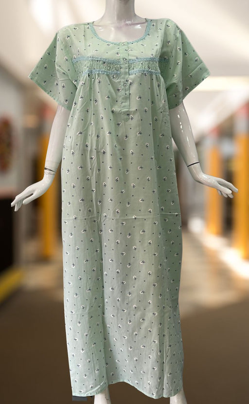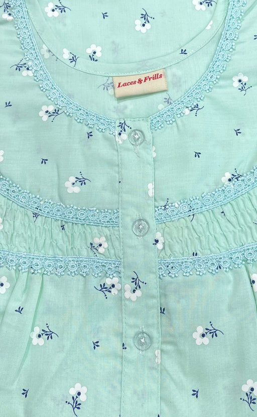View full detailsSea Green Floral Boutique Cotton Nighty. Cotton Fabric | Laces and Frills