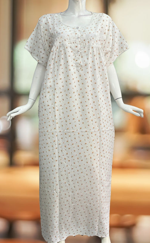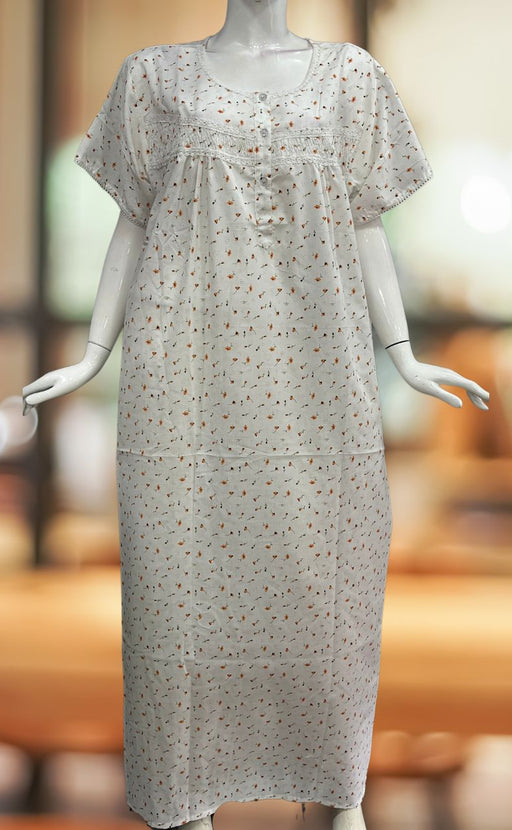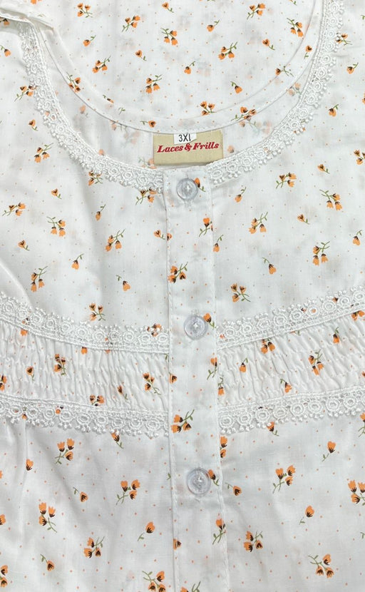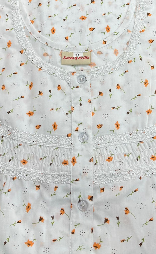 View full detailsWhite/Orange Floral Boutique Cotton Nighty. Cotton Fabric | Laces and Frills