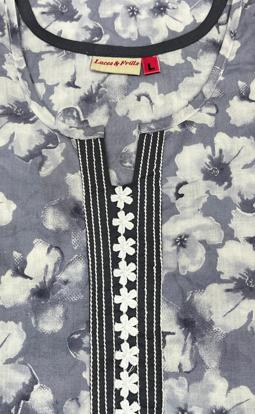 View full detailsGrey Floral Soft Cotton Nighty. Soft Breathable Fabric | Laces and Frills