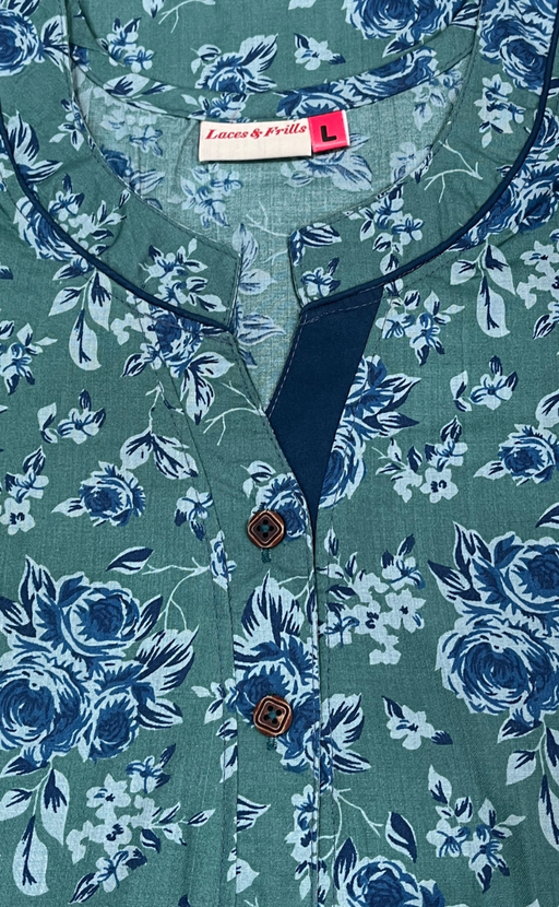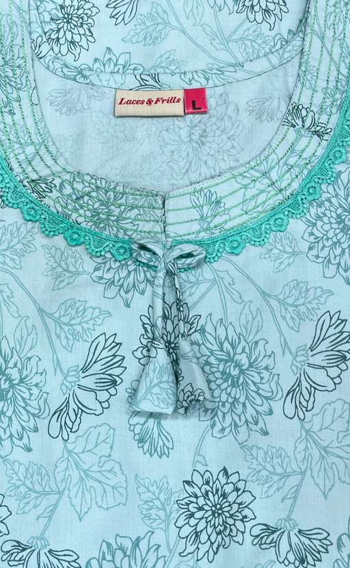 View full detailsSea Green Garden Soft Cotton Nighty. Soft Breathable Fabric | Laces and Frills