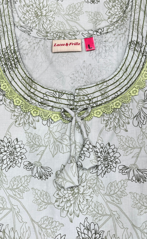 View full detailsGreen Garden Soft Cotton Nighty. Soft Breathable Fabric | Laces and Frills