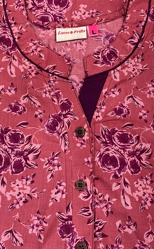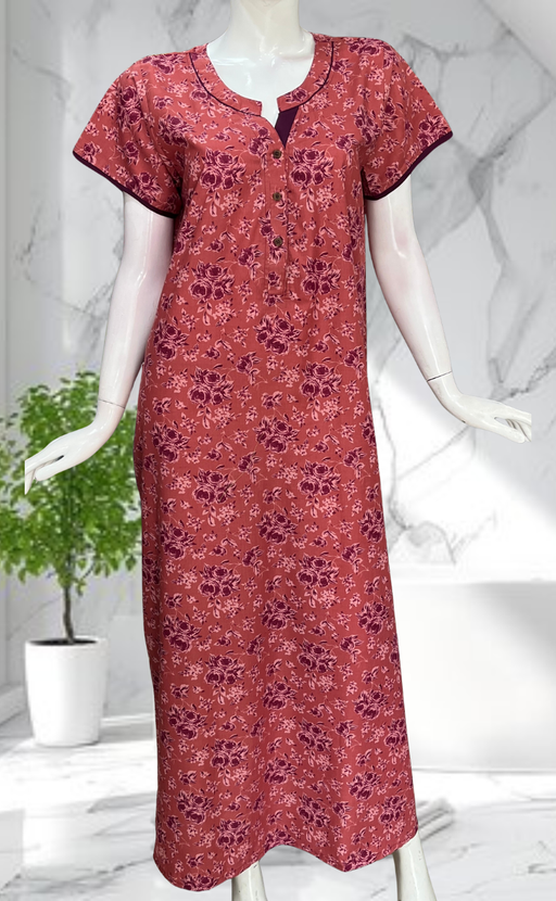 View full detailsMaroon Garden Soft Cotton Nighty. Soft Breathable Fabric | Laces and Frills