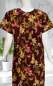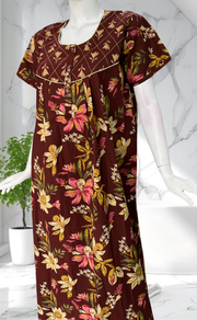 Dark Brown Floral Pure Cotton Nighty. Pure Durable Cotton | Laces and Frills