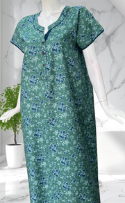 Green Garden Soft Cotton Nighty. Soft Breathable Fabric | Laces and Frills