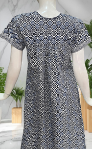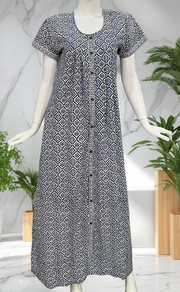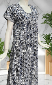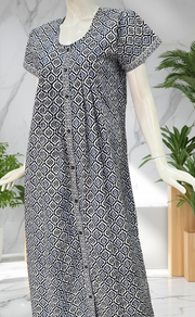 Navy Blue Abstract Full Open Pure Cotton Nighty. Pure Cotton | Laces and Frills