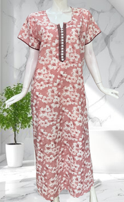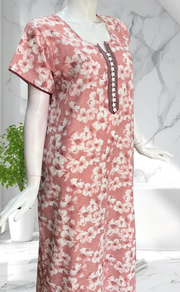 Onion Pink Floral Soft Cotton Nighty. Soft Breathable Fabric | Laces and Frills
