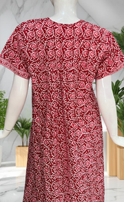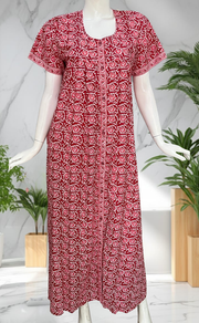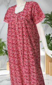 Red Garden Full Open Pure Cotton Nighty. Pure Cotton | Laces and Frills