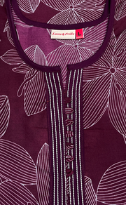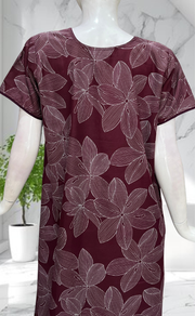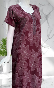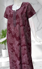Wine Colour Floral Soft Cotton Nighty. Soft Breathable Fabric | Laces and Frills