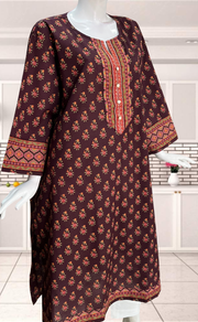 Chocolate Brown Flora Jaipuri Cotton Kurti. Pure Versatile Cotton. | Laces and Frills