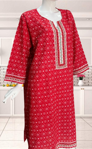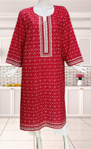 Red Abstract Jaipuri Cotton Kurti. Pure Versatile Cotton. | Laces and Frills