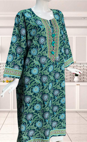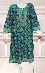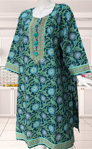 Teal Green Garden Jaipuri Cotton Kurti. Pure Versatile Cotton. | Laces and Frills