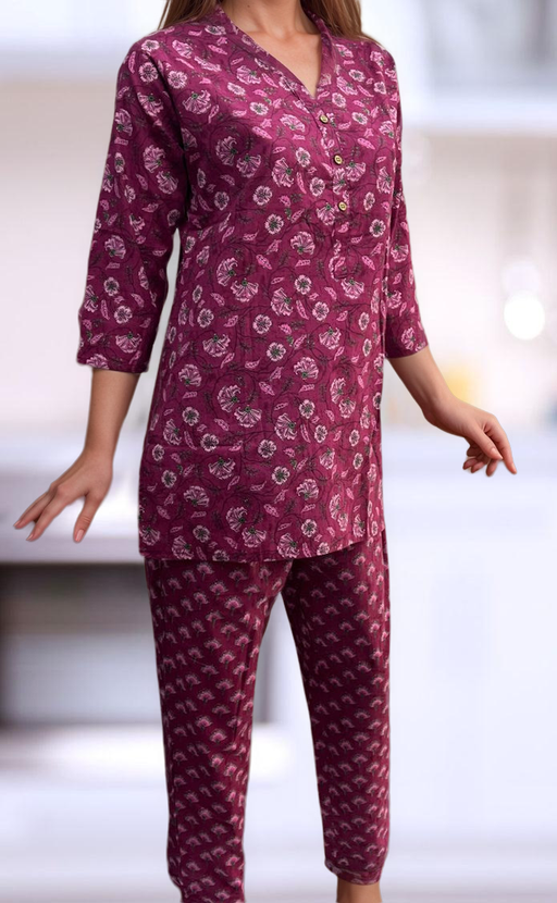 View full detailsWine Purple Flora Kurti Co-ord Set . Versatile Cotton Fabric. | Laces and Frills
