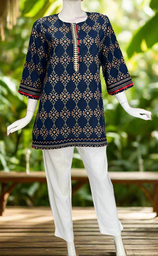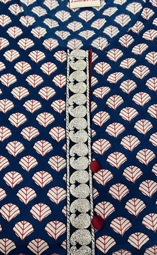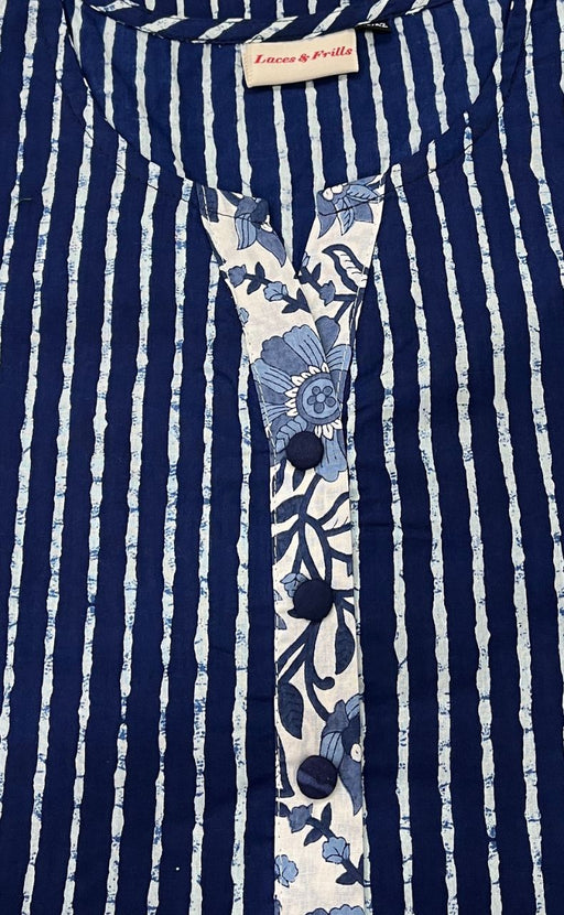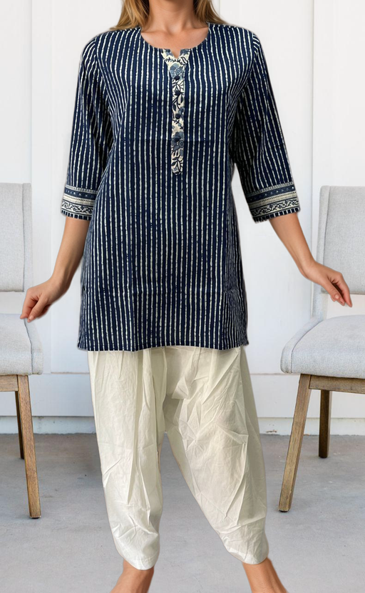 View full detailsNavy Blue Motif Jaipur Cotton Short Kurti. Pure Versatile Cotton. | Laces and Frills
