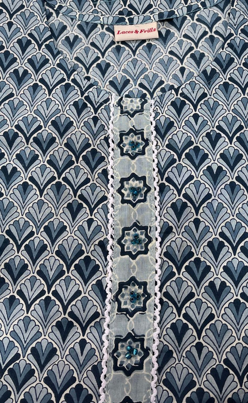 View full detailsPrussian Blue Flora Jaipuri Cotton Short Kurti. Pure Versatile Cotton. | Laces and Frills