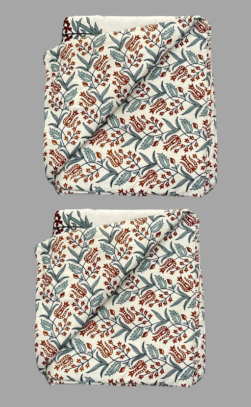 Fabric - The blankets are 100% Cotton (MULMUL). They are three-layered. The top and bottom layers are printed cotton and the middle layer is Soft Flannel which makes it soft, cozy & lightweight.