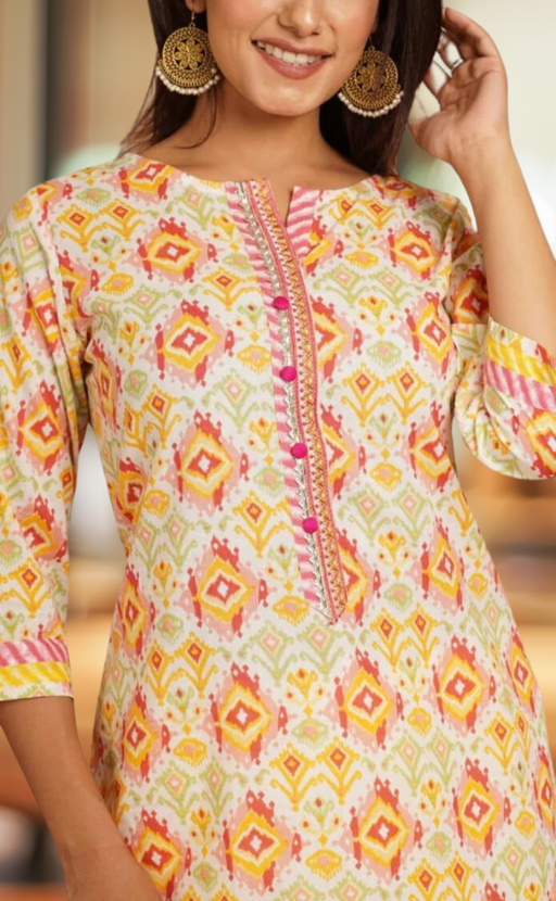 View full detailsPeach/White Kurti With Pant And Dupatta Set .Pure Versatile Cotton. | Laces and Frills