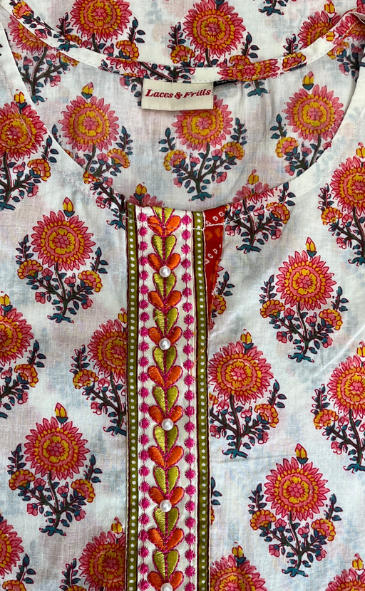 View full detailsPeach/Pink Floral Jaipur Cotton Kurti With Pant And Dupatta Set. Pure Versatile Cotton. | Laces and Frills