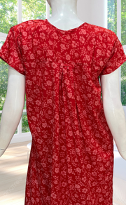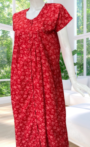 Red Garden Full Open Soft Cotton Nighty. Soft Breathable Fabric | Laces and Frills