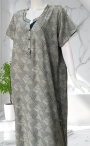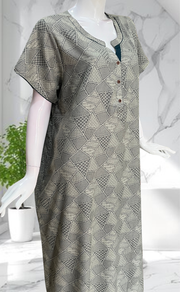 Bottle Green Abstract Spun Nighty. Flowy Spun Fabric | Laces and Frills