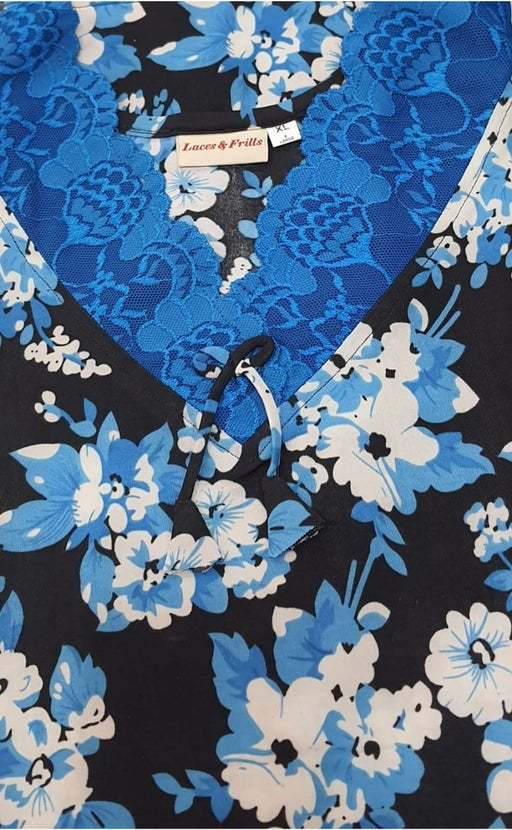 View full detailsBlack/Blue Roses Lycra Soft Extra Large Nighty . Stretchable Lycra Fabric | Laces and Frills