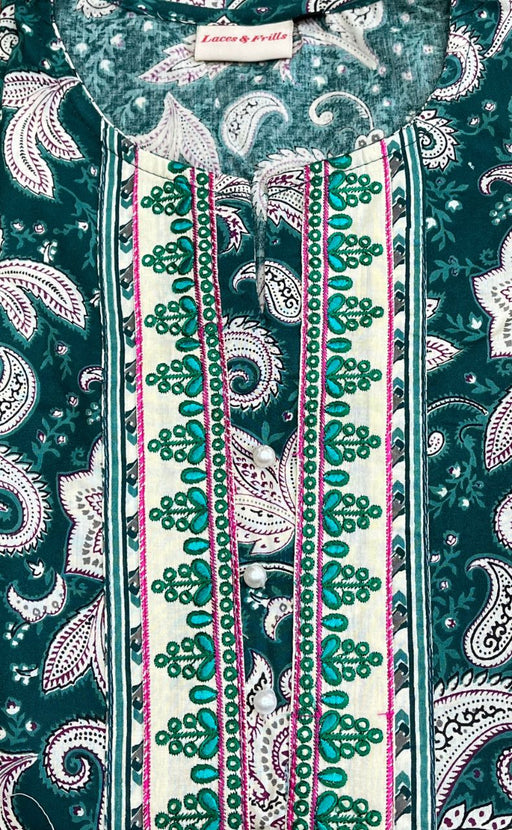 View full detailsTeal Green Floral Jaipur Cotton Kurti With Pant And Dupatta Set .Pure Versatile Cotton. | Laces and Frills