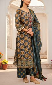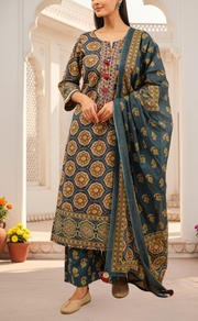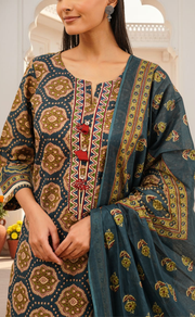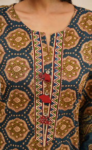 Indigo Blue Ethnic Print Jaipur Cotton Kurti With Pant And Dupatta Set. Pure Versatile Cotton. | Laces and Frills