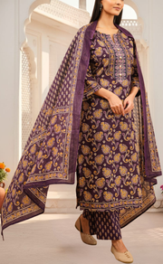 Violet Floral Jaipur Cotton Kurti With Pant And Dupatta Set. Pure Versatile Cotton. | Laces and Frills