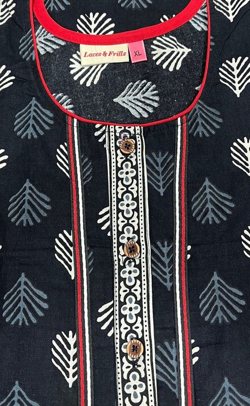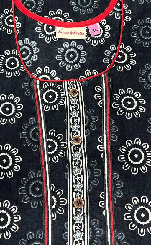 This nighty is ideal for a lady who wears a 3XL Kurti.Black Embroidery Soft Cotton Nighty. Soft Breathable Fabric | Laces and Frills