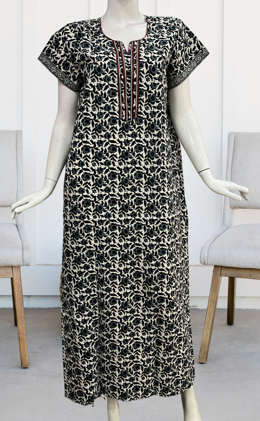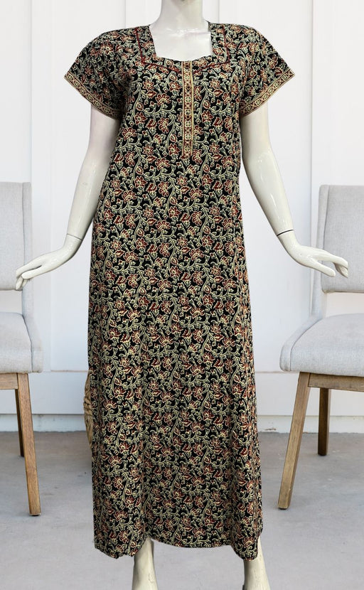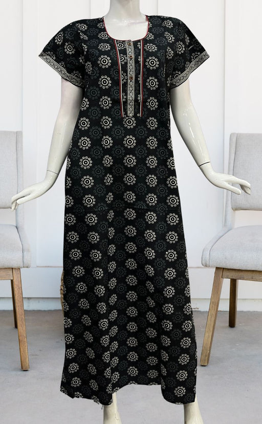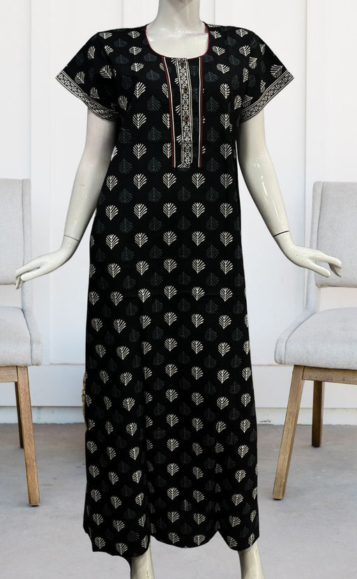 View full detailsBlack Bhopali Embroidery Soft Cotton Nighty. Soft Breathable Fabric | Laces and Frills
