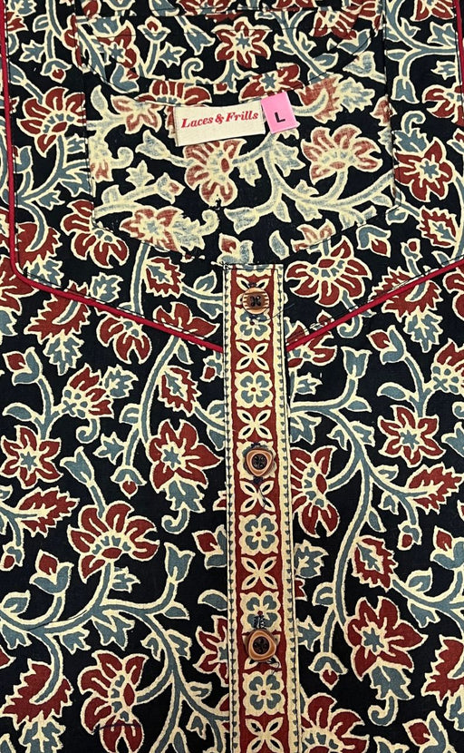 View full detailsMaroon/Black Kalamkari Pure Cotton Nighty. Pure Durable Cotton | Laces and Frills