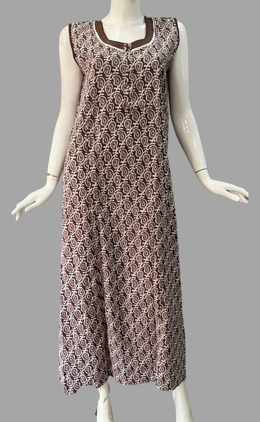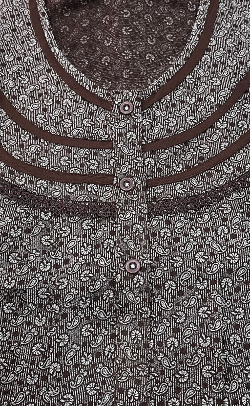 This nighty is ideal for a lady who wears a 3XL Kurti.Dark Brown Floral Pure Cotton Nighty. Pure Durable Cotton | Laces and Frills