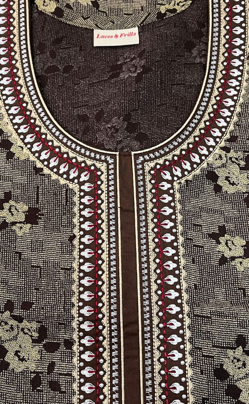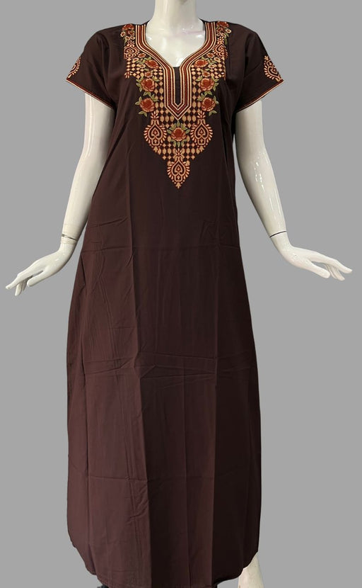 View full detailsBrown Embroidery Spun Nighty. Flowy Spun Fabric | Laces and Frills