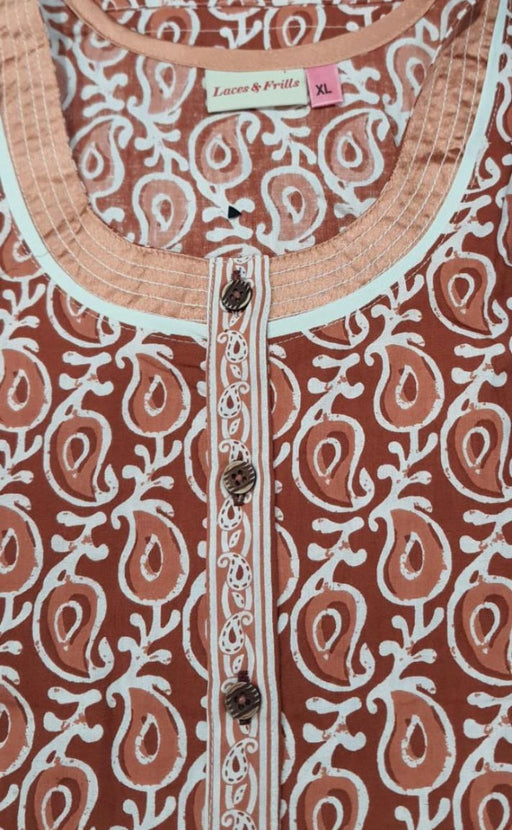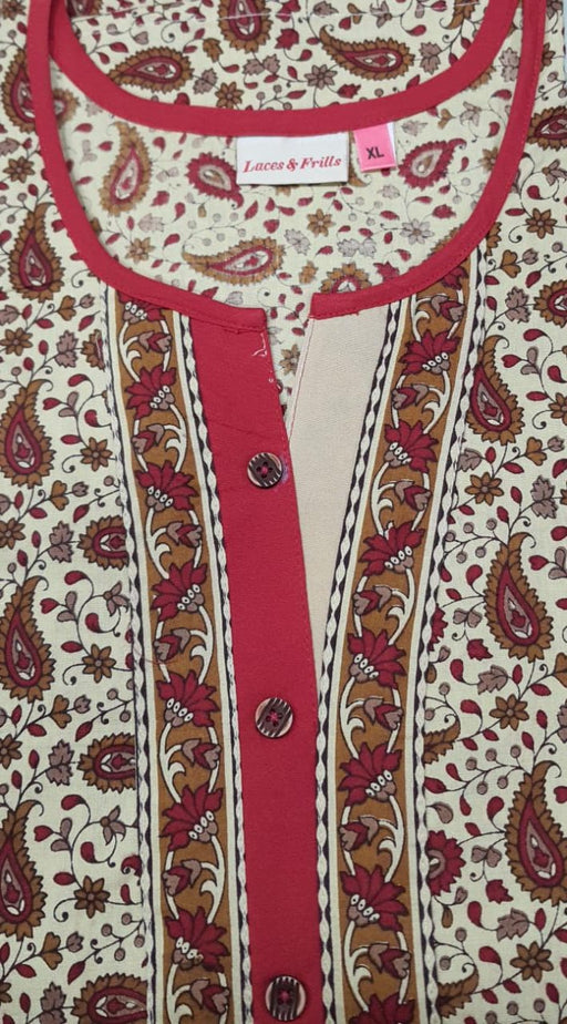 View full detailsRust Maroon Floral Pure Cotton Sleeveless Nighty. Pure Durable Cotton | Laces and Frills