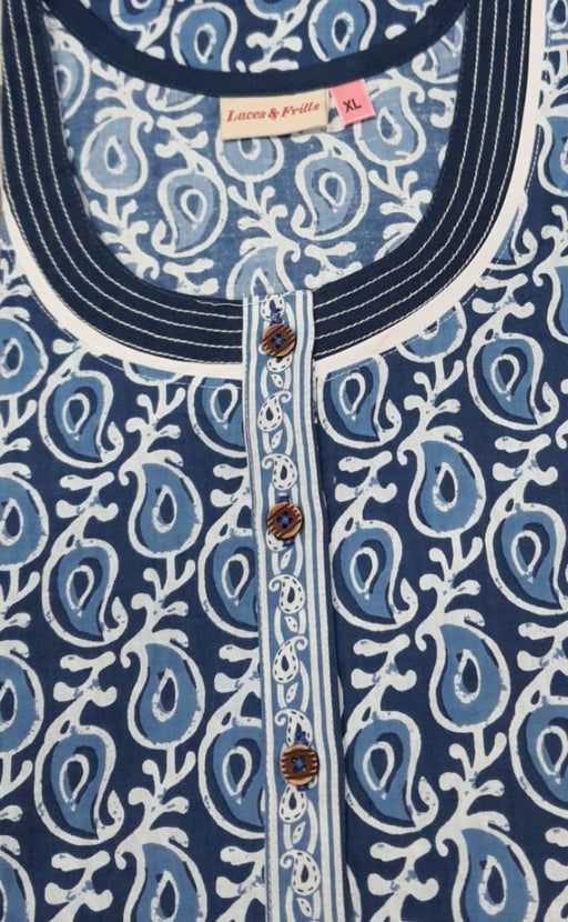 View full detailsLight Blue Floral Pure Cotton Sleeveless Nighty. Pure Durable Cotton | Laces and Frills