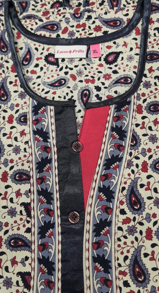 This nightly was perfect. Pls get more a line designs in 6xl. It's a boon for plus size ladies to find nighty of their size. Pls keep restocking